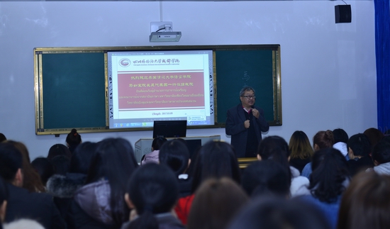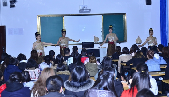会谈后,清迈大学、博仁大学代表团一行为我院泰语专业学生举办了讲座,清迈大学的老师们还表演了泰国风情舞蹈,让同学们深入了解了泰国的历史、文化、经济、旅游等概况和泰国高等教育的相关情况。