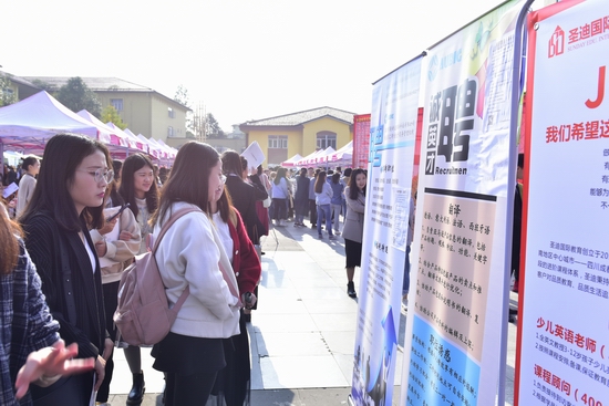 为满足2019届毕业生的就业需求,构建用人单位与毕业生的良好交流洽谈平台,促进毕业生高质量就业,11月1日,我校在博学广场举行了2019届毕业生大型双选会。