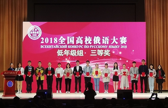 2018年“全国高校俄语大赛”在上海举行,来自北京大学、上海外国语大学等全国147所高校的349名优秀学生参赛。我校俄语专业2017级的林硕在比赛中不畏强手,沉着应对,笔试环节成绩名列第9 ,并最终荣获2018年“全国高校俄语大赛”三等奖,获得了由国家留学基金委资助的公派俄罗斯留学的机会。
