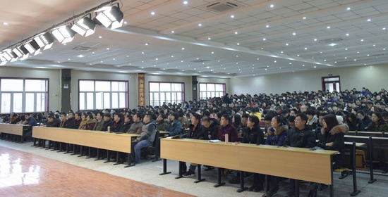 会议通过学校2018年发展纪实的专题片,回顾总结了一年来的重点工作和师生取得的丰硕成果。党委书记、校长尹大家代表学校党政,做了《奋进新时代,阔步新征程》的专题讲话,向辛勤耕耘、无私奉献的全体教职工表示了衷心的感谢,对全体教职工一年来取得的突出成绩表示了热烈的祝贺。尹校长结合2018年的有关教育工作的会议和文件精神,对学校下一步的发展做了总体部署,要求全校上下充分认识全国全省教育大会的重大意义,切实把思想和行动统一到上级关于教育的决策部署上来;充分认识学校发展的新形势,准确把握下一步工作的新方向。尹校长强调,进入新时代,迈上新征程,全校各单位要聚焦立德树人根本任务、坚持办学正确政治方向,推进“四个回归”、抓好人才培养,坚持内涵建设、突出外语优势和特色,全校教职工要进一步提升能力,强化担当,继续发扬我校18年来形成的良好精神风貌,齐心协力,共同努力,用更加出色的成绩,为学校发展建功立业,为自己、为学生、为党和国家交上一份满意的教育答卷。