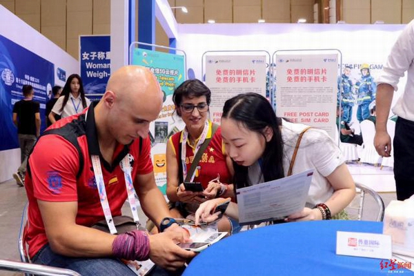 而在会展中心的主会场,和廖敏同一个系的西班牙语学生邹廷愉,也是一位世警会翻译员志愿者。“其实世警会各项设施很完善,这些不会英语的西班牙朋友,主要是在赛场外的方面有翻译需求,比如交通、旅游、美食等。”