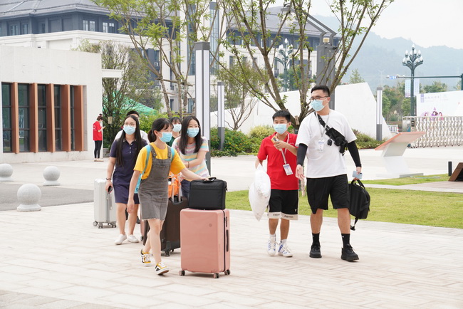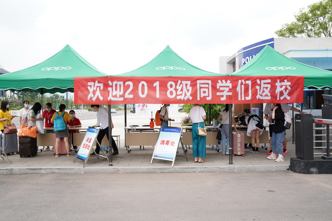 9月5日,校区各部门工作人员和志愿者一大早就来到北大门和宜宾西站,用积极热情的态度,细致入微的服务,迎接同学们返校。查验健康码、检测体温、行李消毒……同学们在志愿者和工作人员的指引下,有序进入校园。