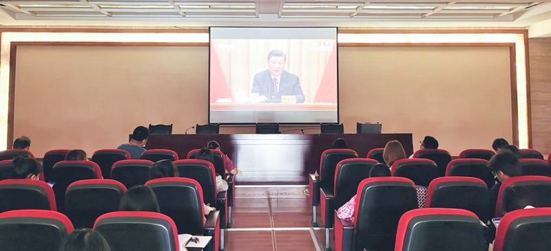5月10日上午,庆祝中国共产主义青年团成立100周年大会在北京人民大会堂隆重举行,中共中央总书记、国家主席、中央军委主席习近平出席大会并发表重要讲话。学校党委部门、共青团系统、学工系统师生代表在学术报告厅观看直播,各二级学院以团支部、班级等为单位组织青年学子通过多种渠道关注大会实况。