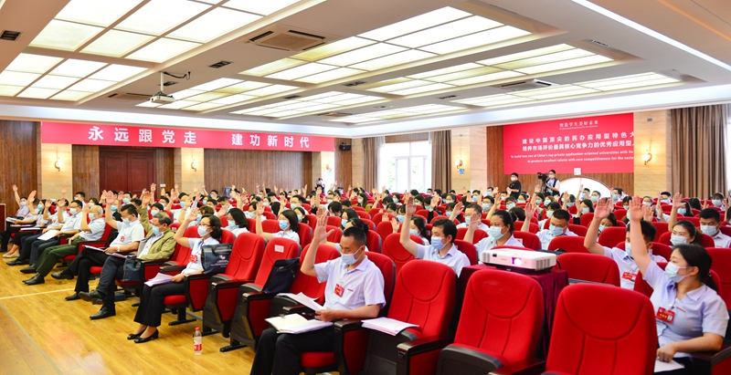 实干把握新机遇,奋斗开启新征程。围绕学校中心工作和发展大局,全体代表和全校教职工将以本次教代会为契机,坚持以习近平新时代中国特色社会主义思想为指导,同心同德、担当有为,推进学校治理体系和治理能力现代化水平持续提升,使办学事业发展得更快、师生的满意度更高、学校的核心竞争力更强、社会美誉度更好,在新赛道上跑出川外成都学院人的最好成绩,早日实现中国顶尖民办应用型特色大学的办学目标,以优异成绩迎接党的二十大胜利召开!